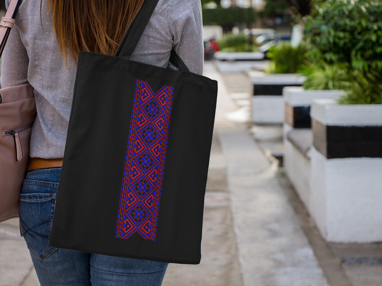 Эко-сумка шоппер с патриотическим принтом "Украинский цветной цветочный вертикальный орнамент" Кавун Бежевый
