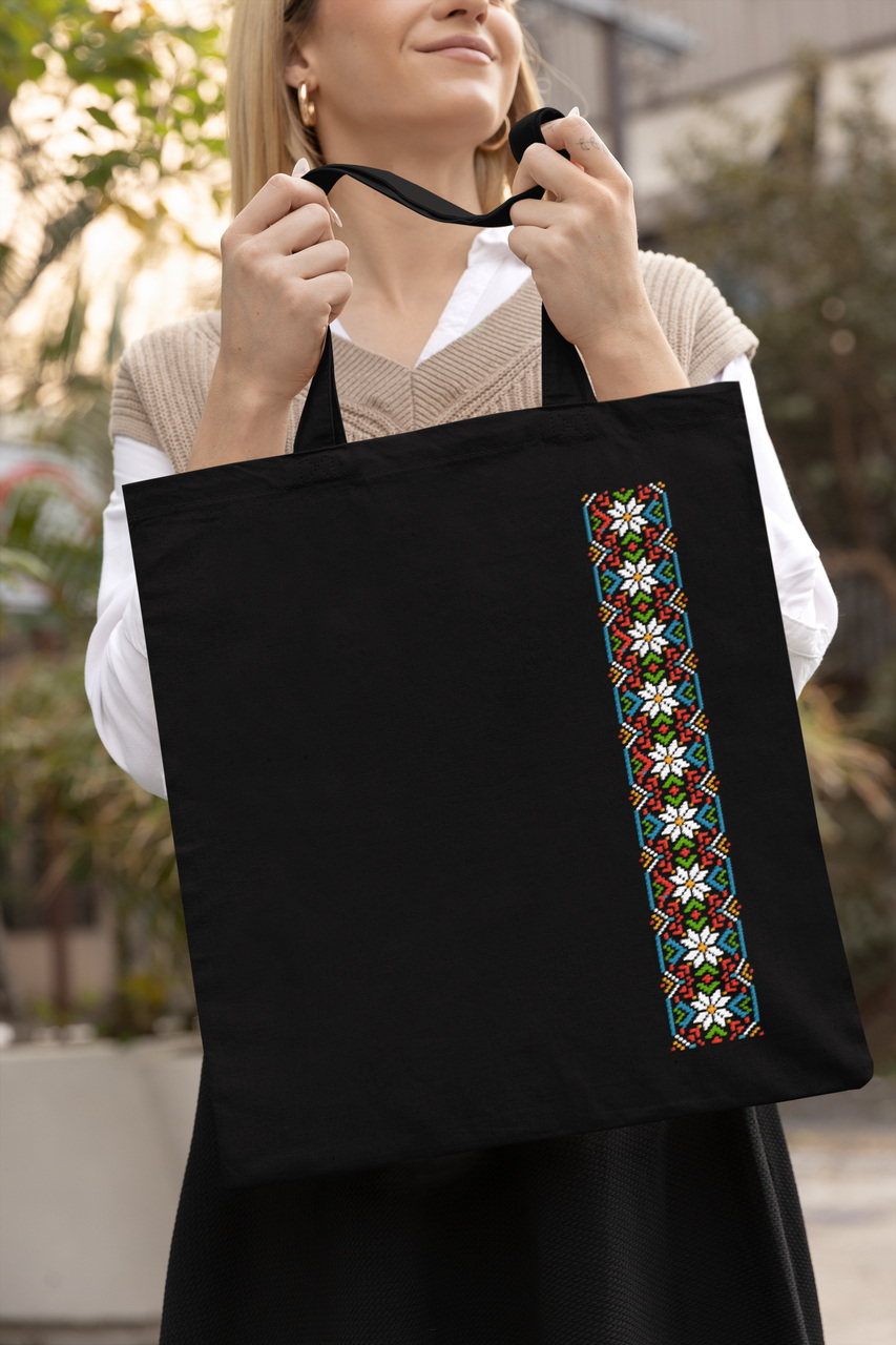 Эко-сумка шоппер с патриотическим принтом "Украинский цветочный орнамент" Кавун Бежевый