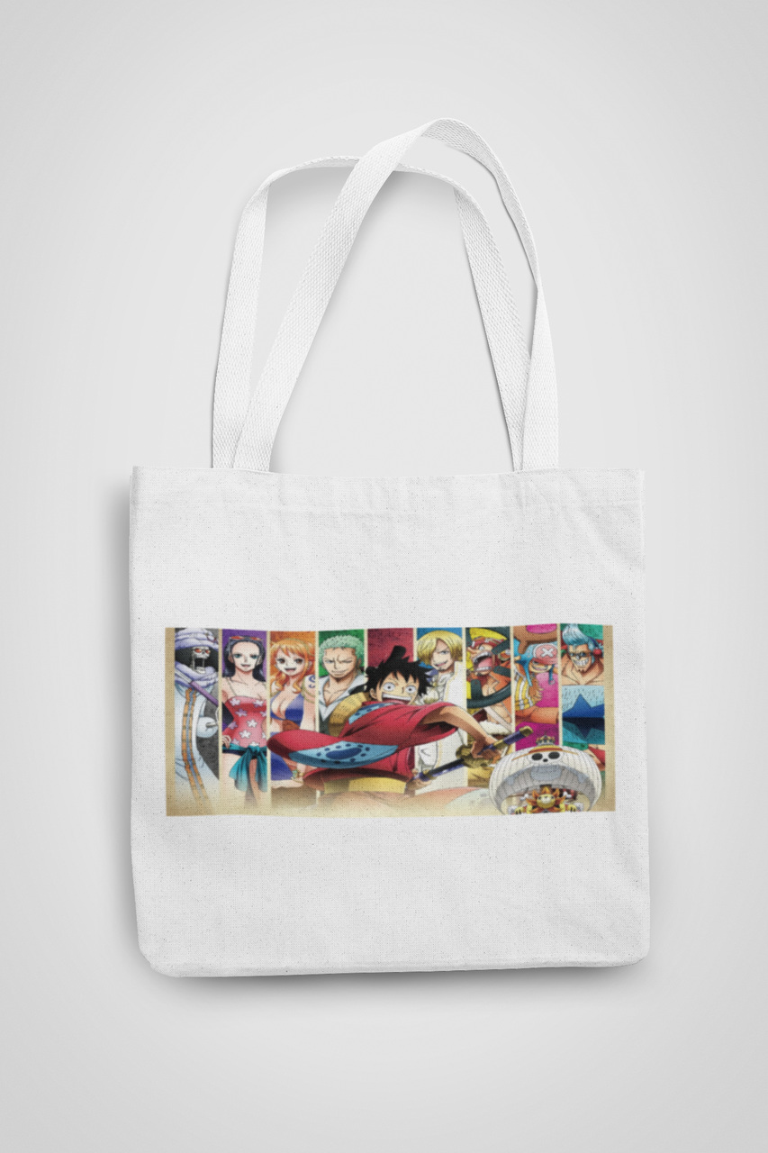 Эко-сумка шоппер с аниме принтом One Piece Ван-Пис Luffy Луффи и команда One Piece Кавун Бежевый