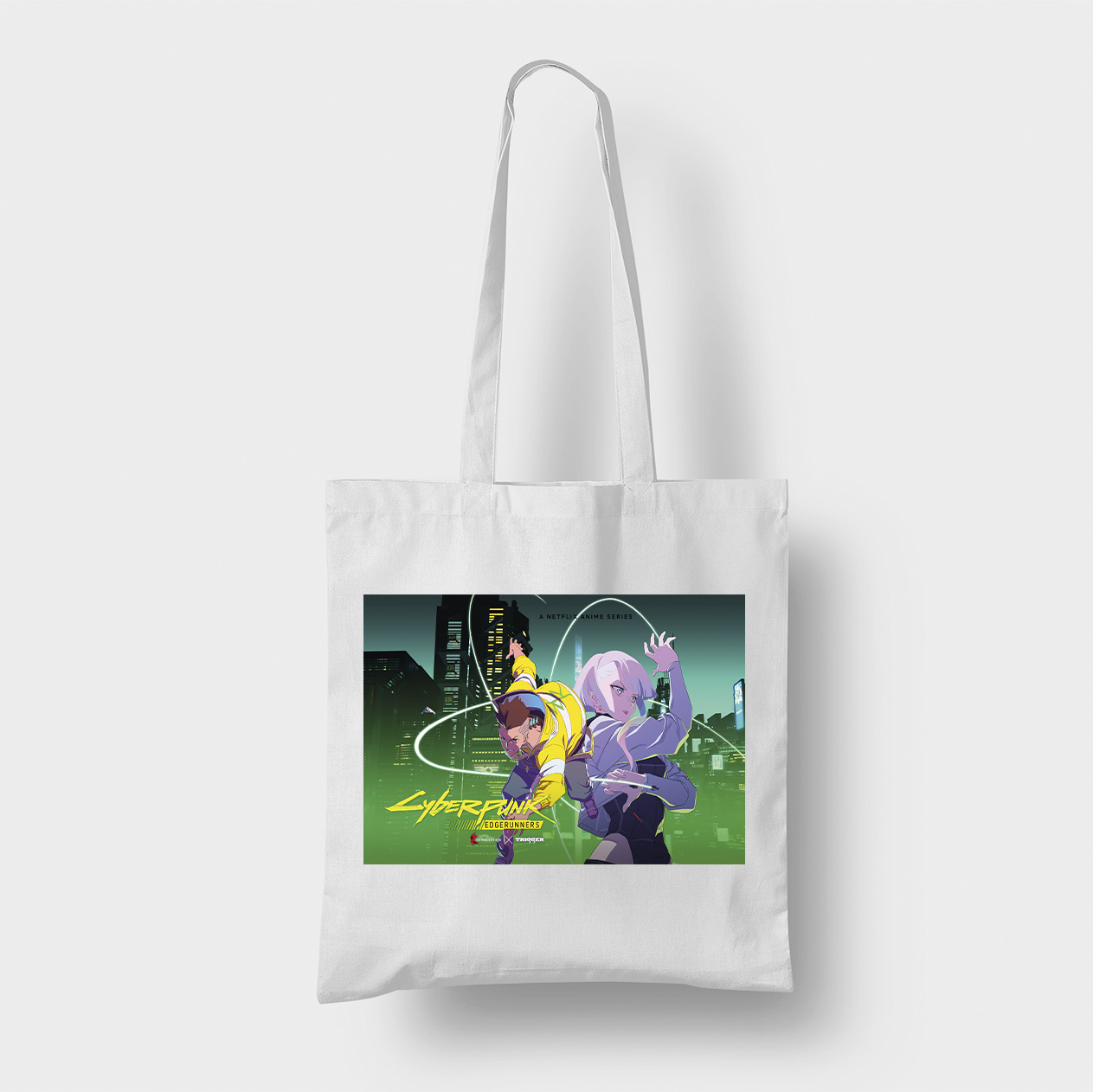 Эко-сумка шоппер с аниме принтом Cyberpunk Edgerunners Киберпанк Бегущие по краю Lucy Люси Дэвид Мартинес Кавун Бежевый