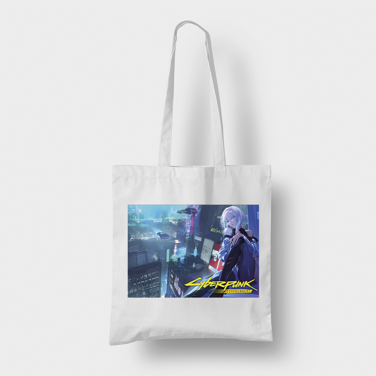 Эко-сумка шоппер с аниме принтом Cyberpunk Edgerunners Киберпанк Бегущие по краю Lucy Люси Кавун Бежевый