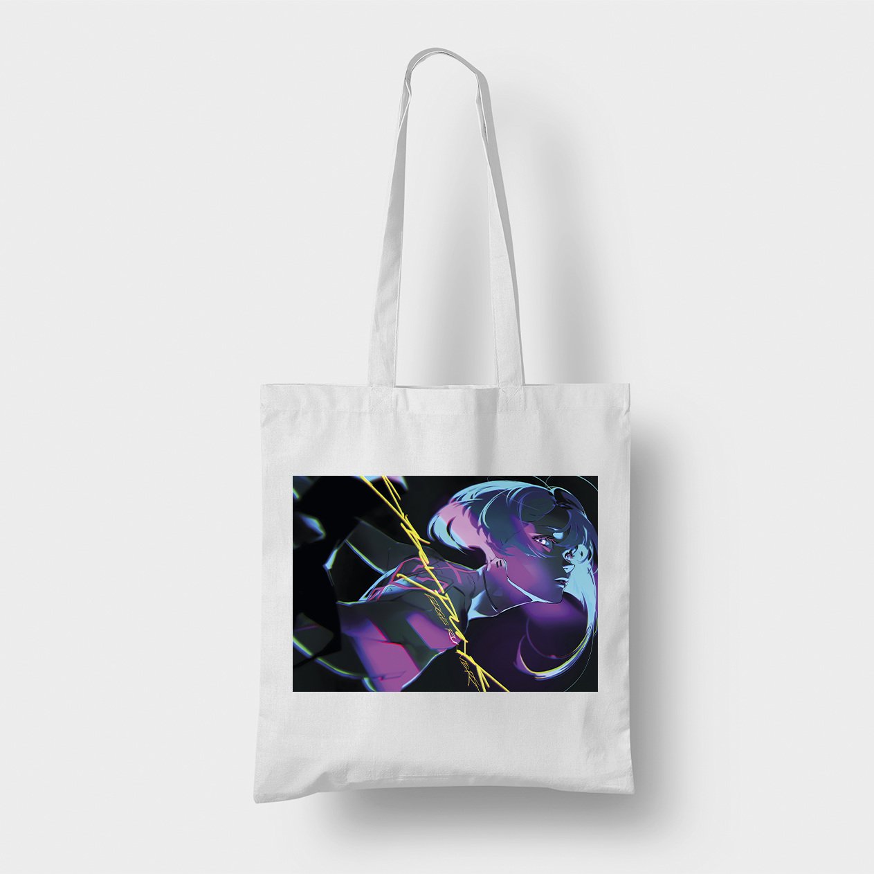 Эко-сумка шоппер с аниме принтом Cyberpunk Edgerunners Киберпанк Бегущие по краю Lucy Люси Кавун Бежевый