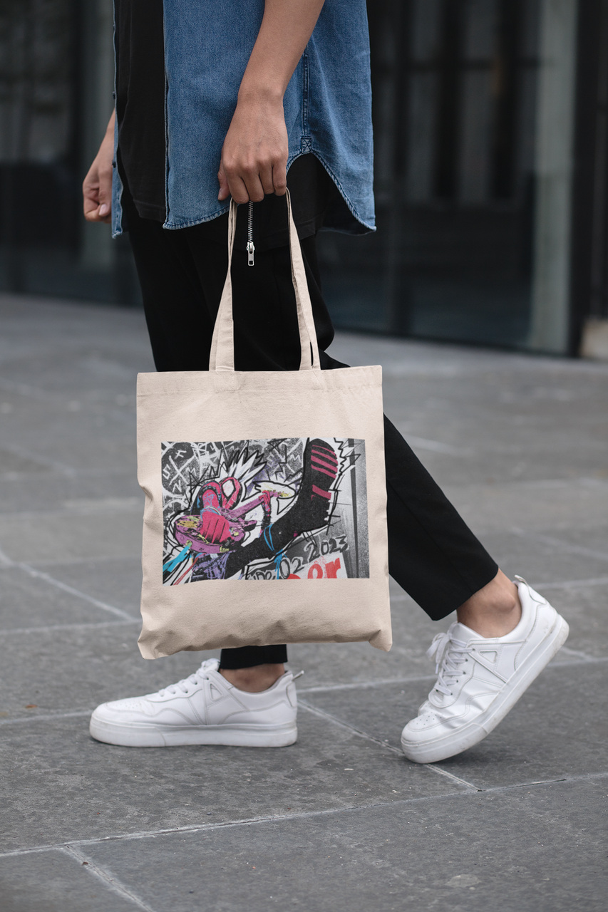 Эко-сумка шоппер с аниме принтом Человек-паук Паутина Вселенных Spider-Man Across the Spider-Verse Кавун Бежевый