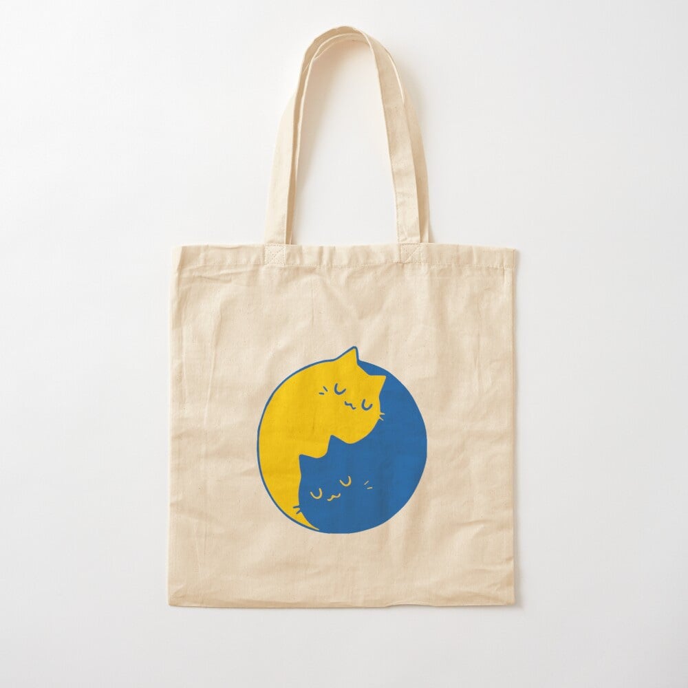 Эко-сумка шоппер с принтом "Украинские коты Инь Ян синий и желтый 3" Кавун Бежевый
