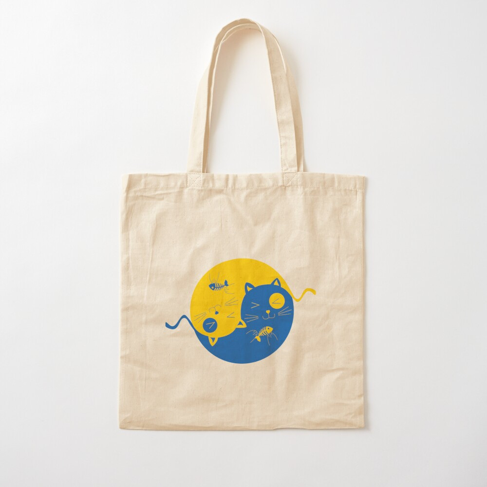 Эко-сумка шоппер с принтом "Украинские коты Инь Ян синий и желтый" Кавун Бежевый