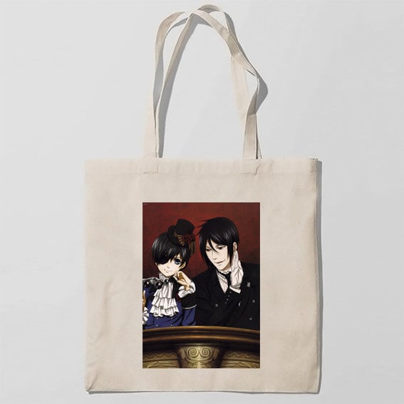 Эко-сумка шоппер с принтом Темный дворецкий-Kuroshitsuji Кавун Бежевый