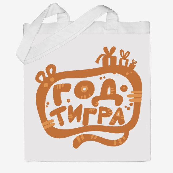 Эко-сумка шоппер с принтом 2022 След тигра Кавун Бежевый