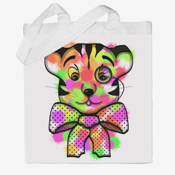 Эко-сумка шоппер с принтом Тигр Кавун Бежевый