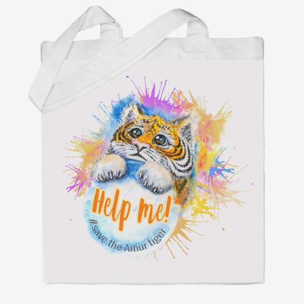 Опис Эко-сумка шоппер с принтом Тигренок Help Me Кавун Бежевый