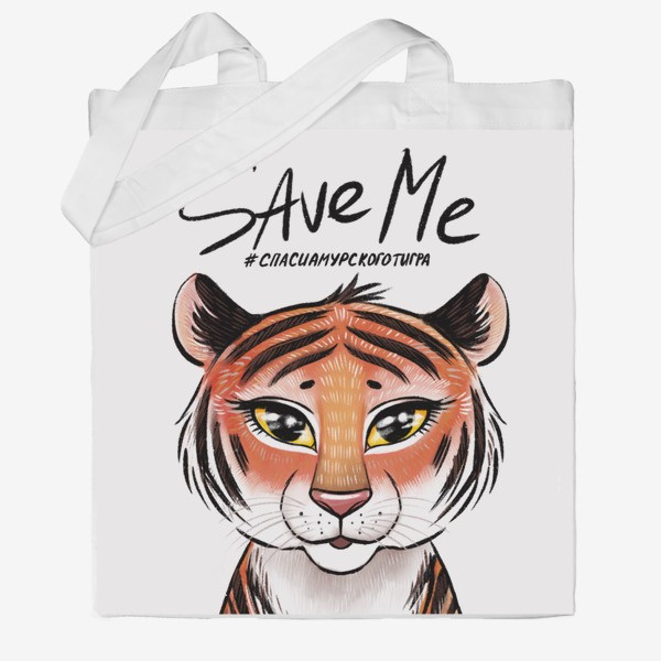 Опис Эко-сумка шоппер с принтом Тигр Save Me Кавун Бежевый