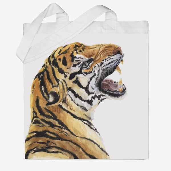 Эко-сумка шоппер с принтом Тигр Кавун Бежевый
