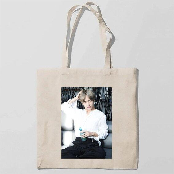 Эко-сумка шоппер с принтом BTS Кавун Бежевый