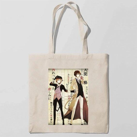 Эко-сумка шоппер с принтом Bungou Stray Dogs - Бродячие псы Кавун Бежевый