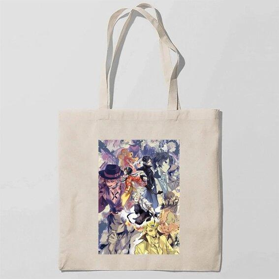 Эко-сумка шоппер с принтом Bungou Stray Dogs - Бродячие псы Кавун Бежевый