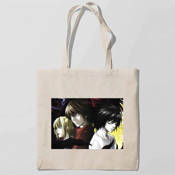 Эко-сумка шоппер с принтом Death Note - Тетрадь смерти лайт Кавун Бежевый