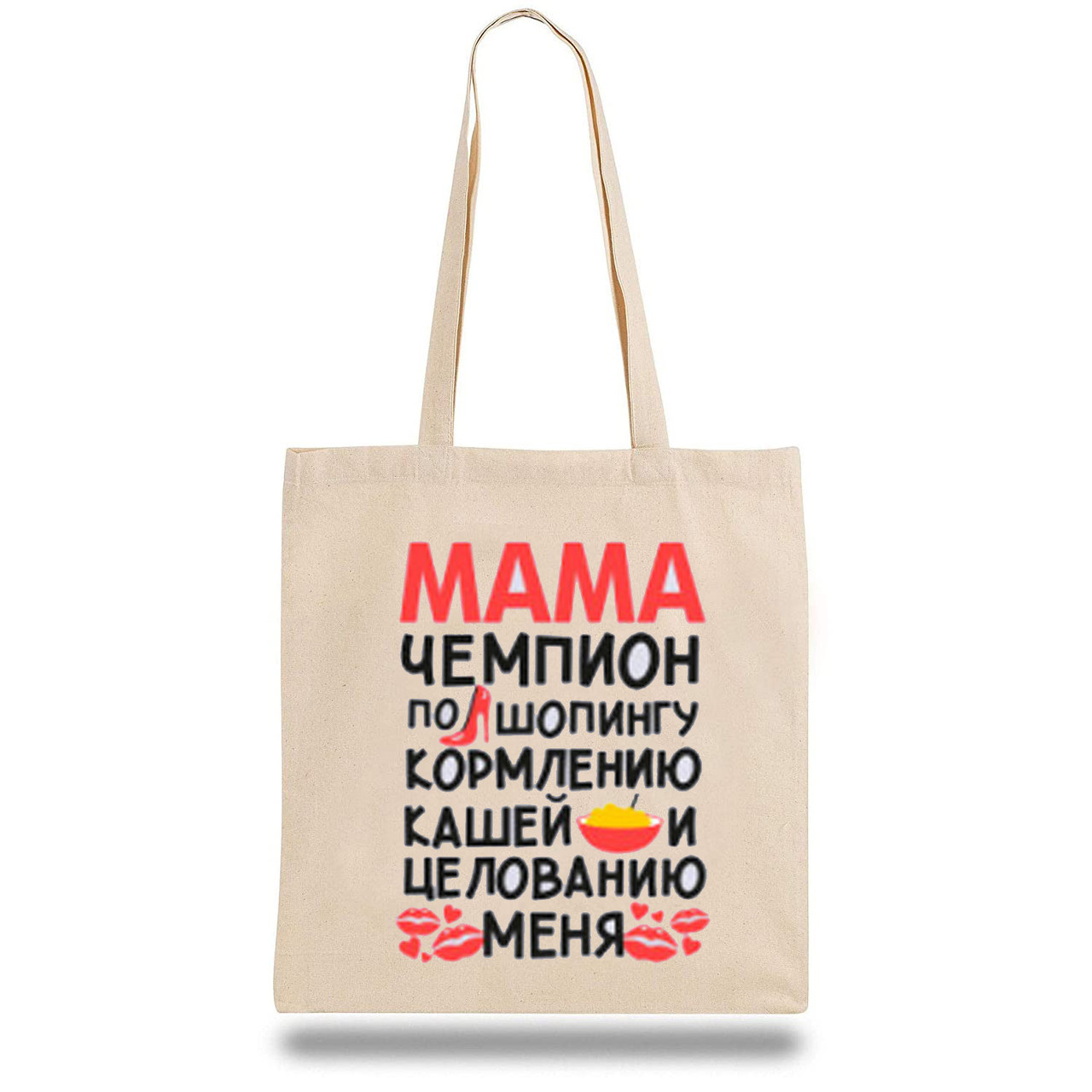 Эко-сумка шоппер с принтом "Мама и ребенок" Кавун Бежевый
