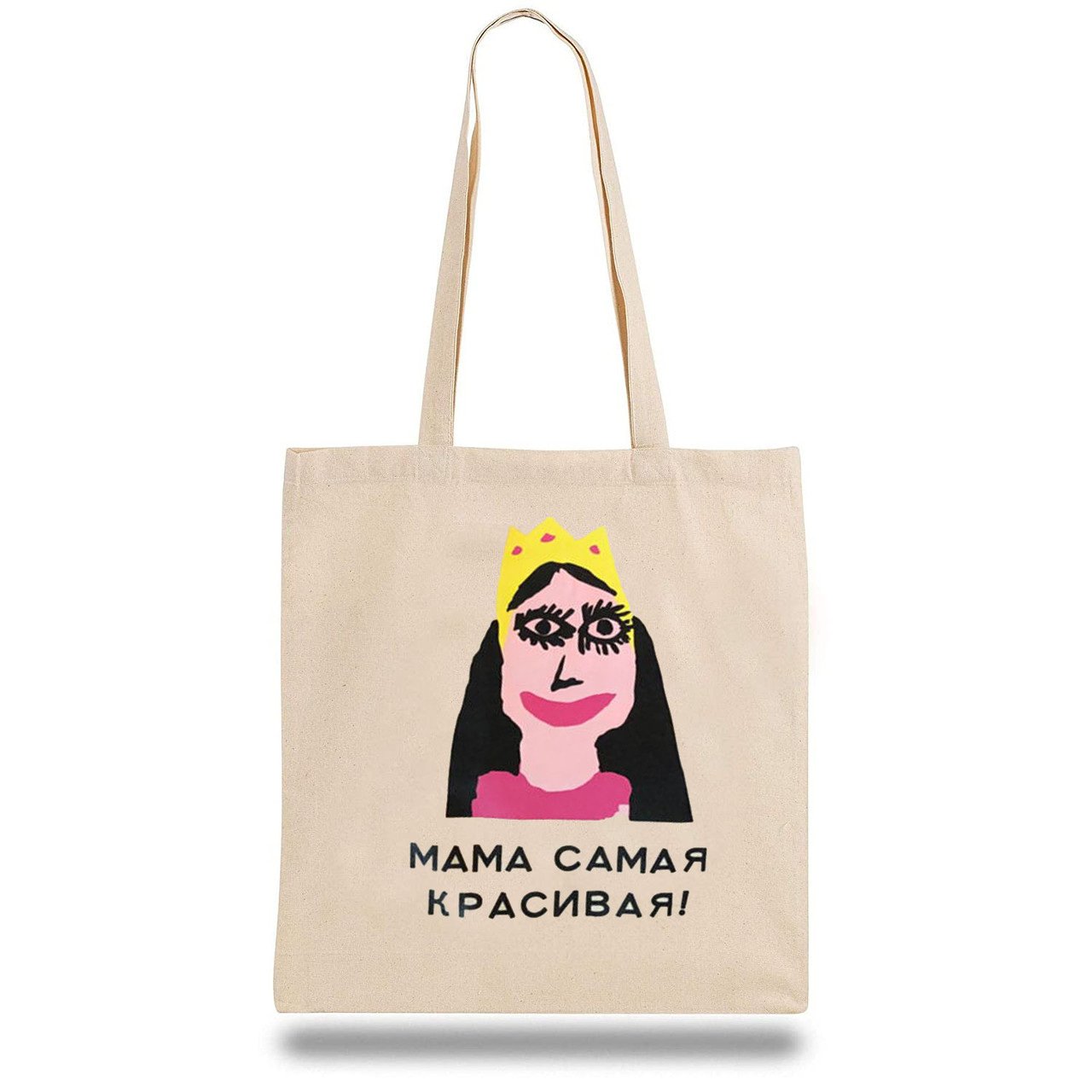 Эко-сумка шоппер с принтом "Мама ты самая лучшая" Кавун Бежевый