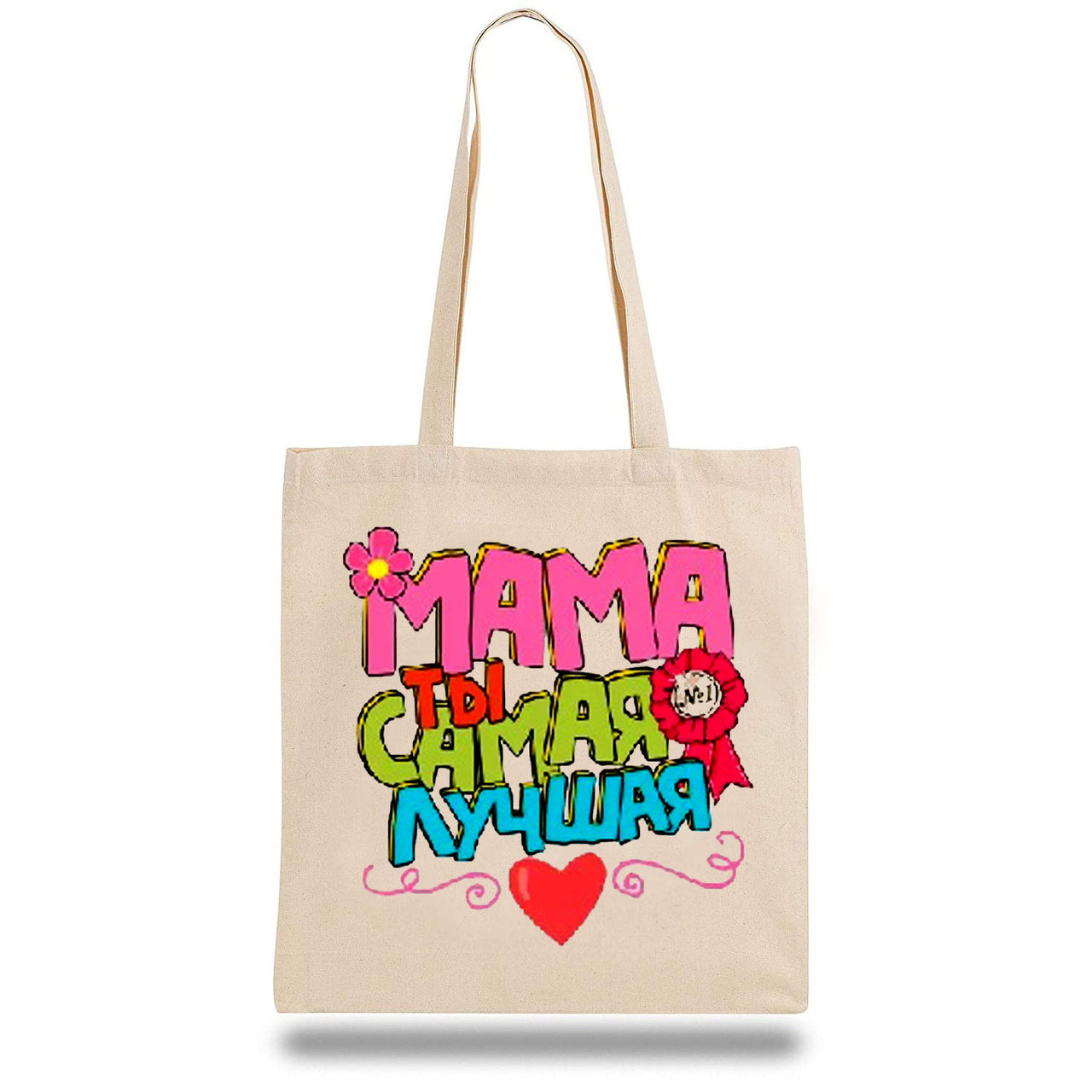 Эко-сумка шоппер с принтом "Мама самая красивая!" Кавун Бежевый