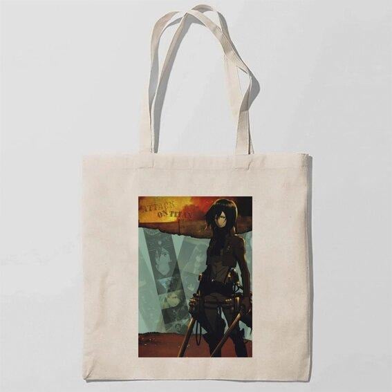 Эко-сумка шоппер с принтом Attack on Titan - Вторжение титанов 6 Кавун Бежевый
