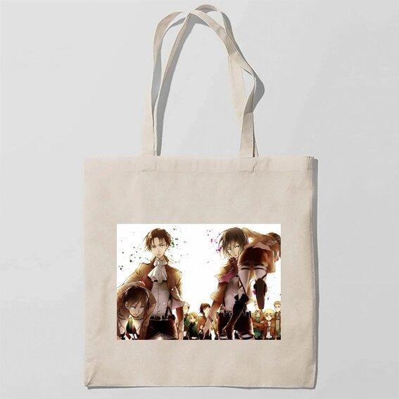 Эко-сумка шоппер с принтом Attack on Titan - Вторжение титанов Кавун Бежевый
