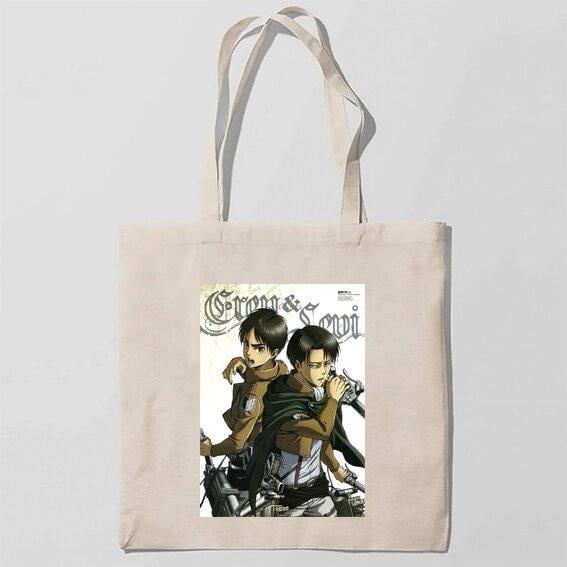 Эко-сумка шоппер с принтом Attack on Titan - Вторжение титанов Кавун Бежевый