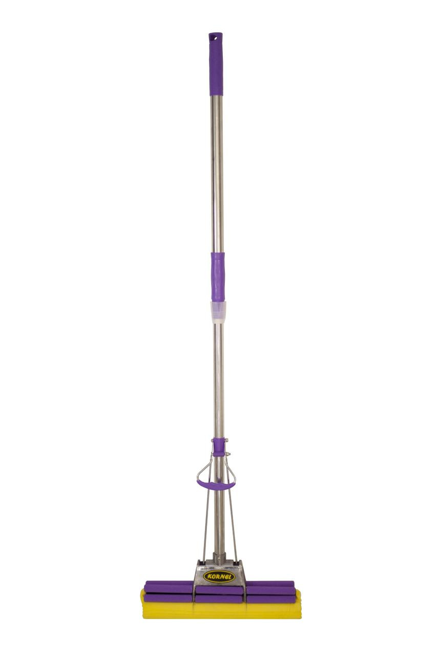 Швабра для уборки "KORNEL" роликовая с двойным отжимом 33 см - предназначена для мытья кафеля, линолеума, ламината, паркета, а так же чистки и мытья ковров от шерсти животных и разного рода загрязнений. Она очень удобна в использовании, благодаря специальному отжиму ваши руки всегда остаются сухими и чистыми во время уборки. Ручка и основание швабры изготовлены из высококачественной нержавеющей стали, длина ручки регулируемая от 100 до 130 см. Губка изготовлена из PVA – мелкопористого материала, впитывающего большое количество воды и создающего вакуумный эффект. Ширина губки – 33 см. Долговечная ребристая поверхность губки способствует удалению труднодоступных загрязнений. Благодаря эффекту "мокрой губки" сразу готова к использованию. Производитель Китай.