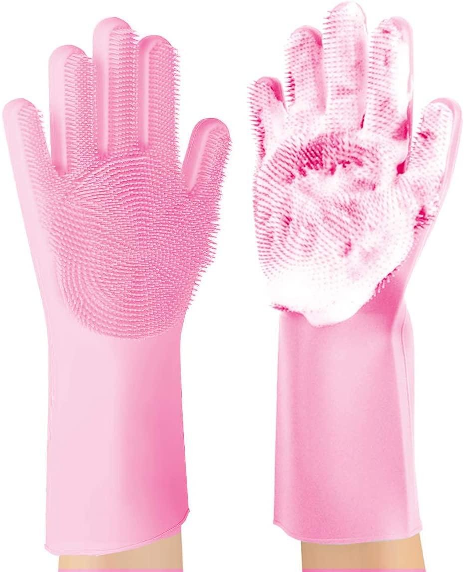 Силиконовые многофункциональные перчатки для мытья и чистки Magic Silicone Gloves. Название чудо-перчаток говорит само за себя – в одно мгновение мытье посуды и другие надоедливые операции упрощаются во много раз. Представьте ощущение того, что вы моете посуду голыми руками – по такому же принципу работают волшебные перчатки. На внутренней стороне ладони и пальцах размещено более тысячи щетинок, выполняющих работу губки.