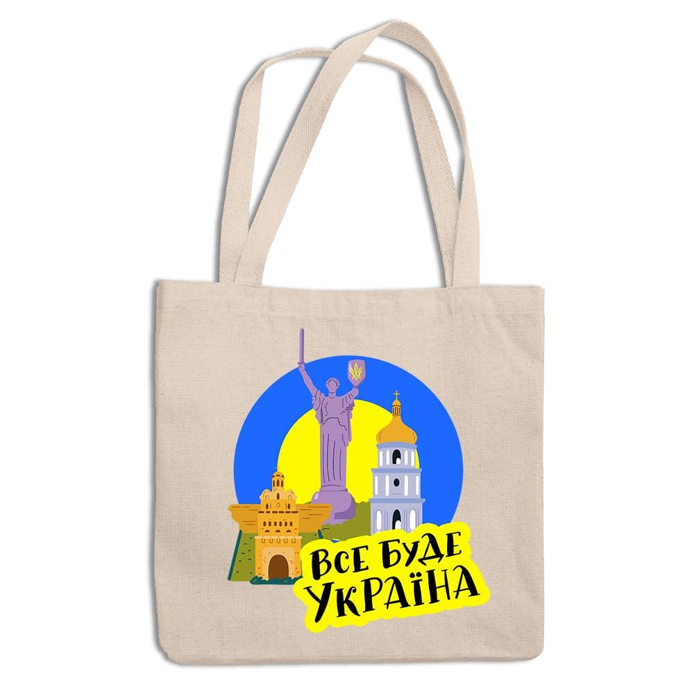 Эко-сумка шоппер с патриотическим принтом "Only Ukraine Только Украина Родина Мать" Push IT Кавун ЭСШ001333