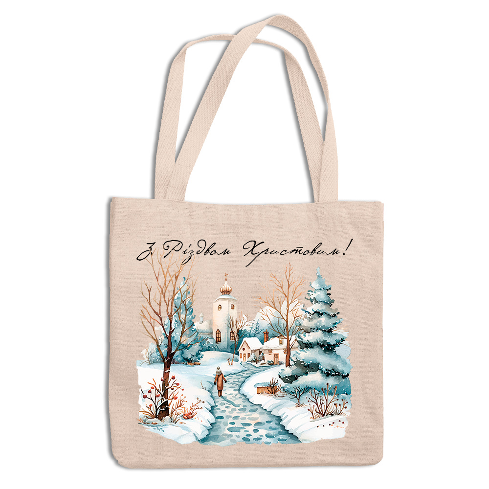 Эко-сумка с новогодним принтом Кавун Снеговик 38х42х10 см Разноцветный ЕСШ001415