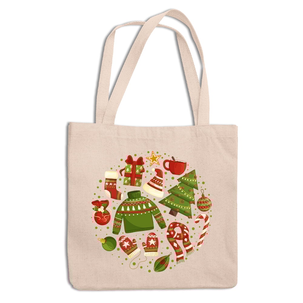 Эко-сумка с новогодним принтом Кавун Снеговик 38х42х10 см Разноцветный ЕСШ001415