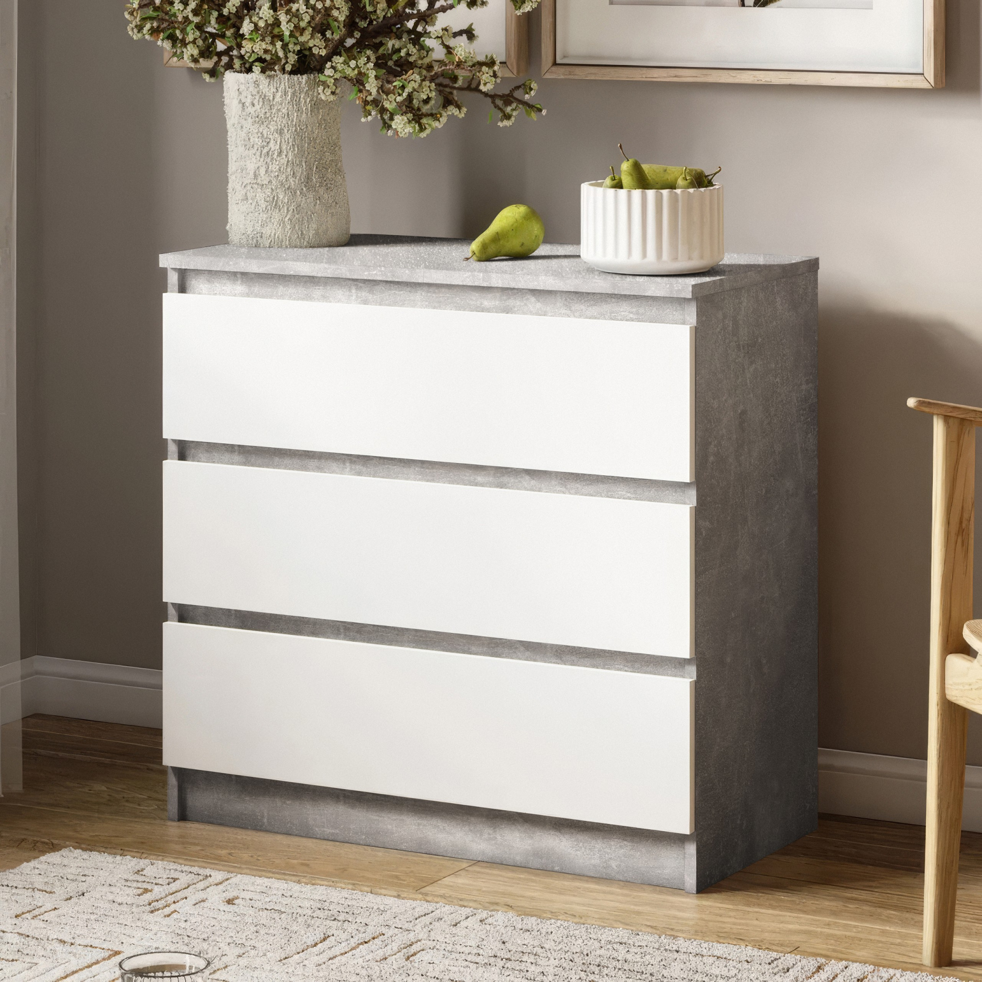 Комод на 3 ящика без ручек FT-214 800х400х755 мм Бетон-Белый, Нимфея Альба (8885898)