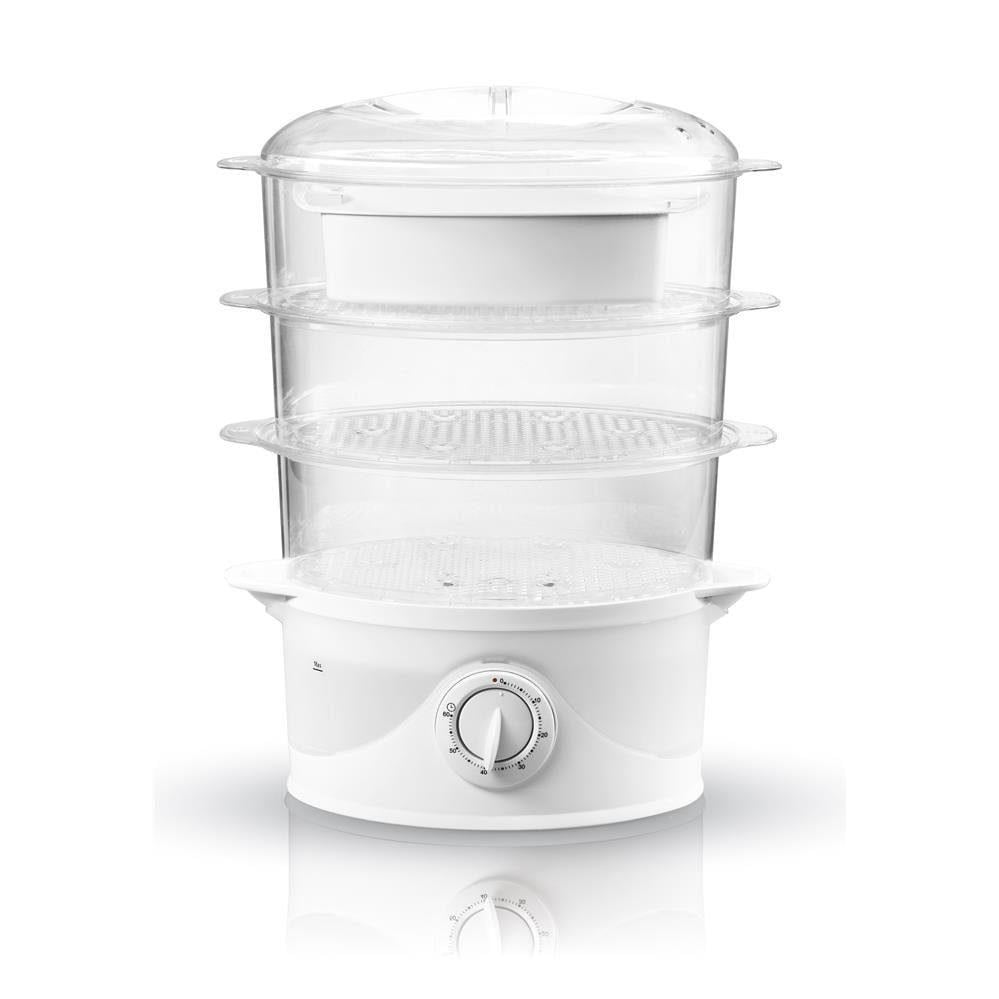 Функціональна пароварка потужністю 800 Вт. Завдяки багатошаровим контейнерам дозволяє готувати кілька страв одночасно. Вироблена пара циркулює всередині пристрою, забезпечуючи рівномірне нагрівання всіх продуктів. Відмінний пристрій для людей, які цінують легкі блюда без жиру. Пароварку можна використовувати як для овочів, так і для м'яса та риби. Вона також має вбудовані підставки для приготування яєць. Крім того, пароварка характеризується швидким часом початку утворення пари, що прискорює приготування страв. Завдяки вбудованому таймеру легко стежити за часом приготування.