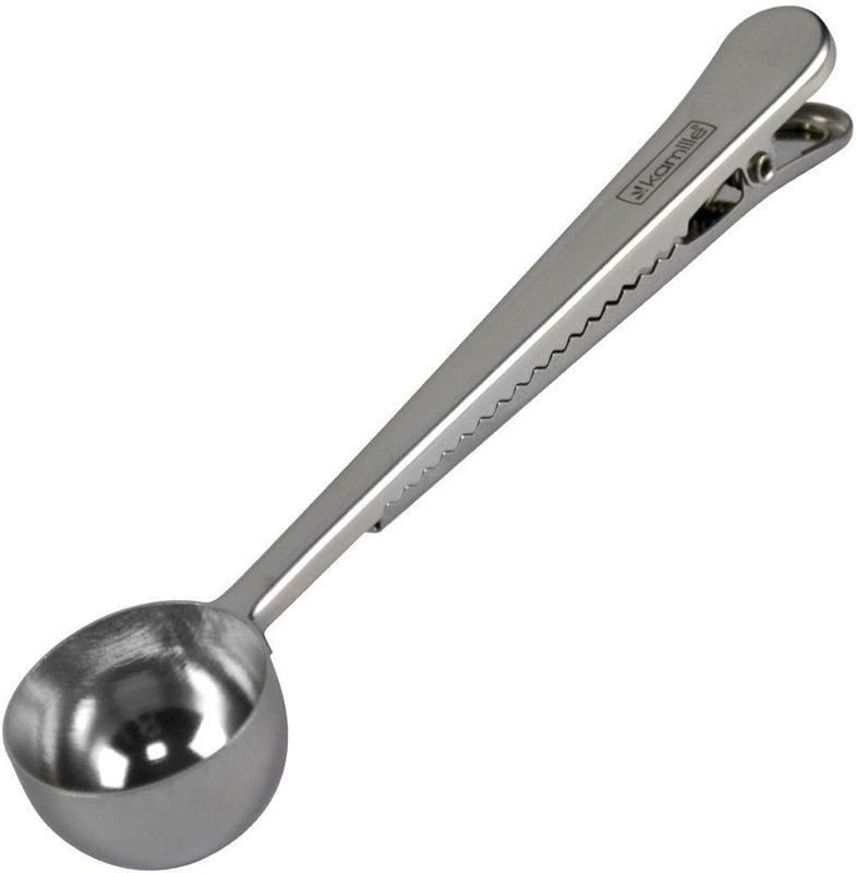Мерная ложка из нержавеющей стали, долговечного, инертного к продуктам материала.