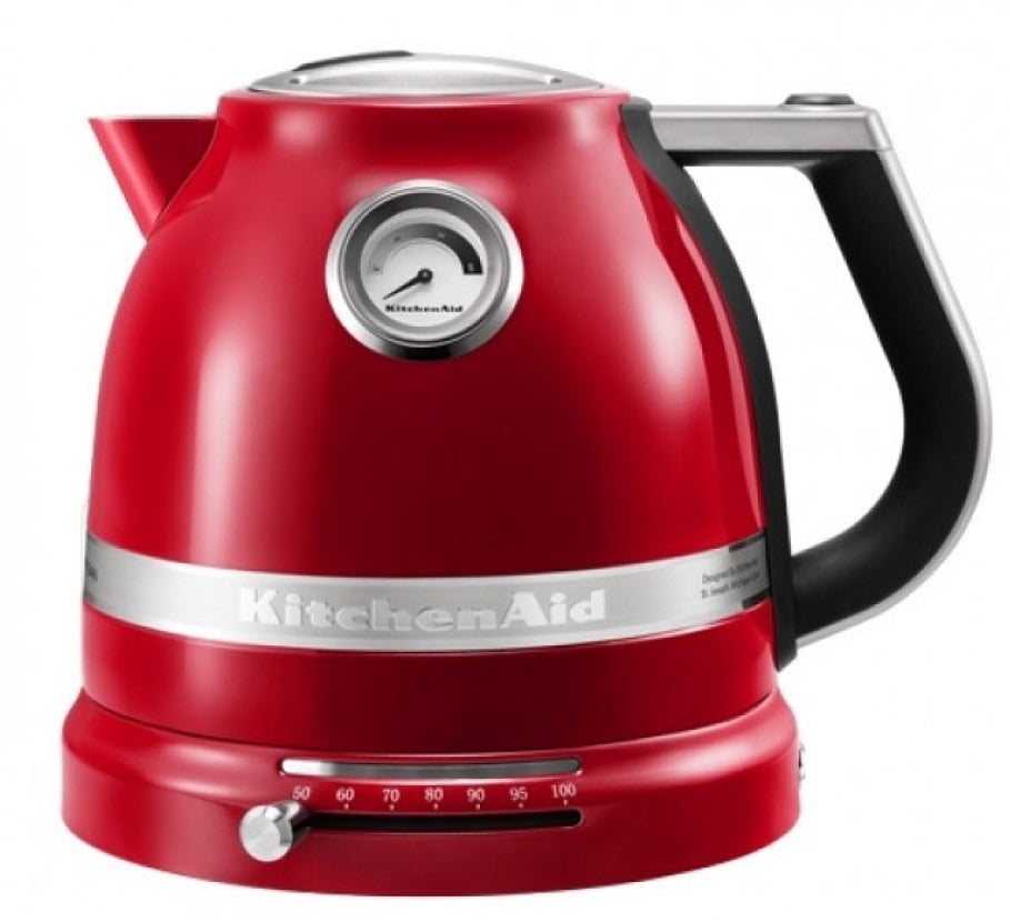 KitchenAid Artisan 5KEK1522EER чайник электрический металлический, красный Долговечный KitchenAid Artisan 5KEK1522EER чайник электрический металлический, красный функциональный аппарат для ценителей чайного напитка. Яркий дизайн и превосходное качество позволит чайнику украсить любую кухню. На алюминиевый корпус чайника, который имеет сделанную по новейшей технологии плавно открывающуюся крышку нанесено специальное устойчивое к механическому воздействию покрытие для надежной защиты прибора от царапин и сколов. Также прибор имеет удобную ручку, с внутренней стороны отделанную нескользящим мягким прорезиненным материалом. Стильная колба чайника имеет эргономичную форму объемом 1,5 литра. Электрический чайник имеет мощность 2,4 кВт, что позволяет прибору быстро достигнуть температуры кипячения. Инновационный чайник kitchenaid сделан по принципу термоса и имеет конструкцию двойных стенок. Благодаря конструкции двух стенок прибора вода закипает практически бесшумно. Также это позволяет оставаться холодными внешним поверхностям чайника и дает дополнительную безопасность. Нагревательный элемент прибора скрыт и выполнен в виде диска. На прочном основании прибора имеется регулятор температуры. С помощью рычажка регулятора можно установить необходимую температуру нагревания в пределах от 50 до 100° С. Нагрев воду до установленной температуры чайник artisan отключится автоматически и будет поддерживать температуру в течение некоторого времени. На корпусе прибора имеется индикатор температуры, который показывает температуру воды в чайнике, даже если он находится не на своем основании. Регулируя нагрев воды можно подобрать идеальную температуру для приготовления любимых напитков и получить неповторимый насыщенный вкус. Прибор имеет практичный съемный фильтр, который защищает воду от попадания посторонних частичек. Фильтр можно легко и просто снять и почистить. На прочном корпусе также находится окошко со шкалой, которое позволяет контролировать уровень воды в чайнике. Для вашего удобства при включении чайника окошко подсвечивается. Основание прибора сделано так, чтобы чайник мог вращаться на 360°. На основании имеются нескользкие резиновые ножки, которые дают дополнительную безопасность и устойчивость. В нижней поверхности основания для хранения шнура имеется отделение. Простой в эксплуатации и долговечный KitchenAid Artisan 5KEK1522EER позволяет купить электрочайник в интернет магазине и порадовать всех членов семьи. По доступным ценам интернет магазин осуществит доставку чайника по Москве, России, Казахстану, Украине и СНГ. KitchenAid Artisan 5KEK1522EER чайник электрический металлический, красный ОБЩИЕ ХАРАКТЕРИСТИКИ Тип электрический Серия ARTISAN Потребляемая мощность (Вт) 2400 Тип управления электронное Переключатели кнопочные + поворотные Гарантия производителя 3 года ДИЗАЙН И МАТЕРИАЛ Цвет красный Материал корпуса металл Материал подставки пластик Материал внутренней стенки пищевой пластик Материал внутренней основы нержавеющая сталь Двойная стенка Шкала уровня воды КОМПЛЕКТАЦИЯ Подставка с поворотом на 360° Съемный фильтр от накипи Отсек для сетевого шнура / намотка кабеля ФУНКЦИОНАЛЬНОСТЬ Терморегулятор Температурные режимы (С°) 50/60/70/80/90/100 Функция сохранения температуры Индикация включения Индикация температуры Звуковой сигнал Отключение при закипан