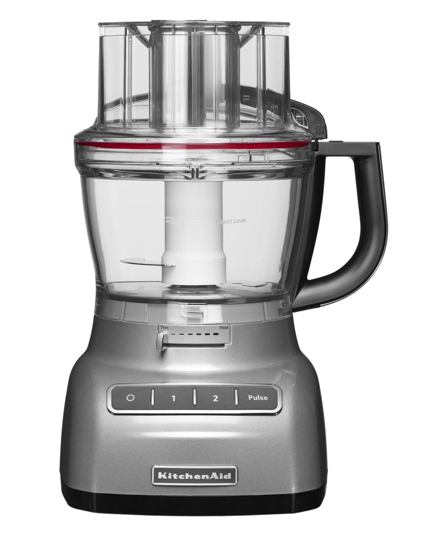 Кухонный комбайн - процессор KitchenAid 5KFP1335ECU, 3.1 л, серебристый Процессор KitchenAid 5KFP1335ECU - самый лучший пример вашего помощника на кухне, он быстро и качественно измельчает свежие фрукты, сырые и обработанные овощи, лимонную цедру, сухофрукты, свежие и сухие травы, чеснок, орехи вплоть до однородной массы. Если вы захотели приготовить пюре из любых фруктов и овощей, порубить сырую или отварную говядину, мясо птицы или морепродукты; натереть твердые сыры на высококачественной нержавеющей терке, мелко и ровно нарезать грибы для жульена или ваших любимых салатов, нашинковать листья шпината, салата, любой свежей зелени, нарезать сельдерей кусочками различной формы, лук, морковь, болгарский перец, бананы, яблоки либо другие фрукты и даже замесить тесто и взбить сливки, то приобретая эту незаменимую вещь - это все становится просто увлекательным занятием, которое доставит массу удовольствия любой хозяйке и превратит рутинную работу на кухне в праздник. Кухонный комбайн KitchenAid 5KFP1335ECU имеет супер прочное металлическое основание, которое покрыто устойчивой к царапинам эмалью, не подвергается коррозии. Мощность комбайна Kitchenaid 650 ВТ, у него очень тихий и долговечный двигатель. Сенсорная панель управления удобна и проста в использовании даже ребенку, исключает попадание капель жидкости и частиц продуктов в механизм. Что же делает этот комбайн таким функциональным? Во-первых, это сразу две чаши различных по объему. Во-вторых - это несколько ножей, которые можно использовать для разных видов нарезки. Набор из двух чаш позволяет обрабатывать разный объем продуктов. Эти чаши вставляются одна в другую для экономии вашего кухонного пространства. Для безопасного хранения аксессуаров и насадок есть надежный контейнер. Эта техника создана для тех, кто ценит комфорт и готов переложить все скучные домашние дела по кухне на надежного механического помощника, и можете не сомневаться, он вас не подведет. Этот великолепный кухонный комбайн KitchenAid 5KFP1335ECU цвета серебристого какао станет незаменимым помощником на кухне для любой хозяйки. Процессор кухонный купить проще чем вы думаете, в нашем интернет-магазине на официальном сайте KitchenAid вы сможете выбрать для себя лучший кухонный комбайн Kitchenaid. Это тот самый кухонный комбайн цена которого вас приятно удивит и не оставит равнодушной даже самую требовательную хозяйку. Комплектация: Рабочая чаша объемом 3,1 л Миничаша объемом 950 мл и минилезвие из нержавеющей стали Крышка рабочей чаши Подающая трубка 3-в-1 Режущий диск с внешним контролем Двусторонний шинковальный диск Многофункциональное лезвие из нержавеющей стали Насадка для теста Венчик для взбивания яиц Футляр для аксессуаров Кухонный комбайн - процессор KitchenAid 5KFP1335ECU, 3.1 л, серебристый
