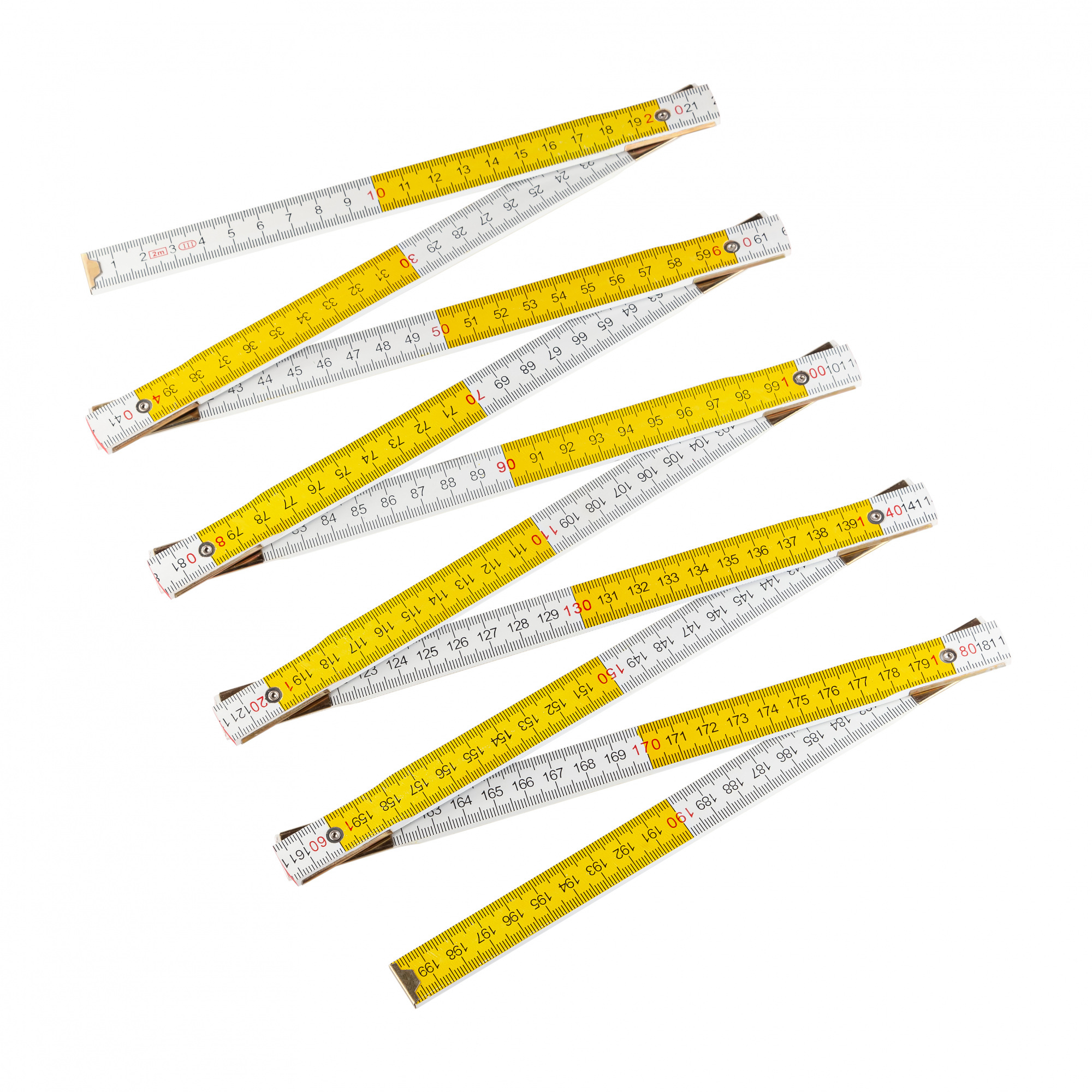Лінійка дерев'яна складна 2 м, жовто-біла — це зручний та надійний вимірювальний інструмент, виготовлений із якісного дерева, призначений для точного вимірювання довжини в побутових, будівельних або столярних роботах. Складається з п'яти сегментів, з’єднаних міцними шарнірами, що дозволяє швидко розгортати лінійку до повної довжини 1 метр та компактно складати для зберігання або перенесення. Жовто-біле маркування з чіткою шкалою забезпечує добру видимість та зручність при роботі навіть за слабкого освітлення.