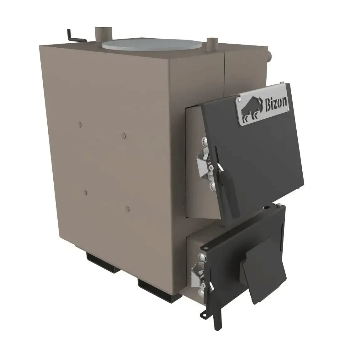 Твердопаливний котел тривалого горіння Bizon М-100П 10 кВт із плитою + механічний терморегулятор