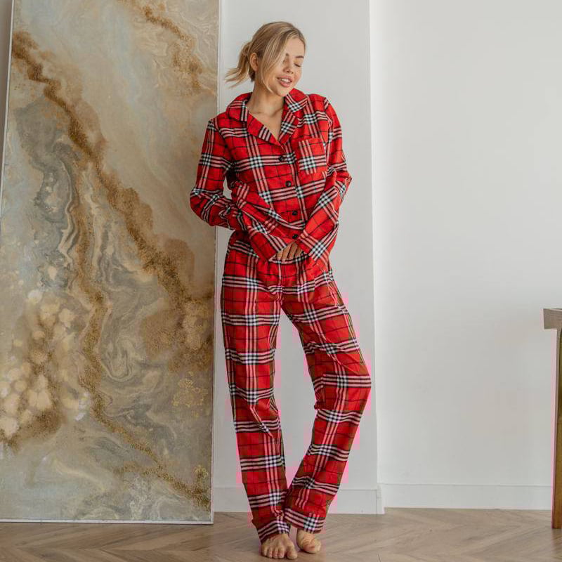 Жіноча піжама Scottish – класика, затишок і стиль у кожній деталі! Scottish – це ідеальна жіноча піжама в клітинку, що поєднує комфорт, тепло і стильний дизайн. Виготовлена з турецької байки преміум-класу, яка м'яка, приємна на дотик і не кашлатиться навіть після багаторазового прання. Ця тепла піжама для жінок стане чудовим вибором для холодної пори року, забезпечуючи максимальний комфорт під час сну та відпочинку вдома. Що входить у комплект? Сорочка на ґудзиках – класична модель з коміром, що додає елегантності та зручності. Штани прямого крою – стильні, комфортні, з кишенями та м'якою резинкою на талії. Переваги жіночої піжами Scottish: Тепла піжама для холодних ночей – байка з натуральної бавовни забезпечує тепло та комфорт. Стильна клітинка – класичний шотландський дизайн завжди в моді. Жіноча піжама для сну і відпочинку – ідеальна для затишних вечорів та розслаблення вдома. М’яка і приємна до тіла – натуральна тканина підходить навіть для чутливої шкіри. Не кашлатиться і зберігає вигляд – байка залишається м'якою і якісною навіть після багаторазового прання. Жіночий комплект для дому – стильний вибір для комфорту вдома. Піжама у подарунок – чудовий варіант для мами, сестри, подруги або коханої. Кому підійде жіночий комплект Scottish? Тим, хто шукає теплу жіночу піжаму для сну та дому. Жінкам, які люблять зручний і стильний домашній одяг. Тим, хто обирає натуральні тканини, що дихають. Для людей із чутливою шкірою – байка не викликає подразнень. Як жіноча піжама у подарунок – стильний, практичний і затишний вибір. Як доглядати за піжамою з байки? Прати при температурі до 30°C у делікатному режимі. Не використовувати відбілювачі та агресивні мийні засоби. Сушити природним способом, уникаючи пересушування в сушарці. Прасувати при середній температурі або використовувати відпарювач.