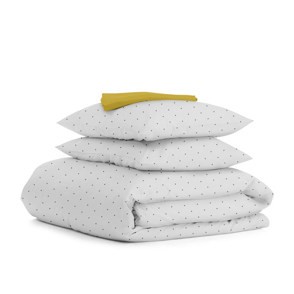 Двоспальна постіль з простирадлом на гумці Mini Dots COSAS Бежевий 180х220 см