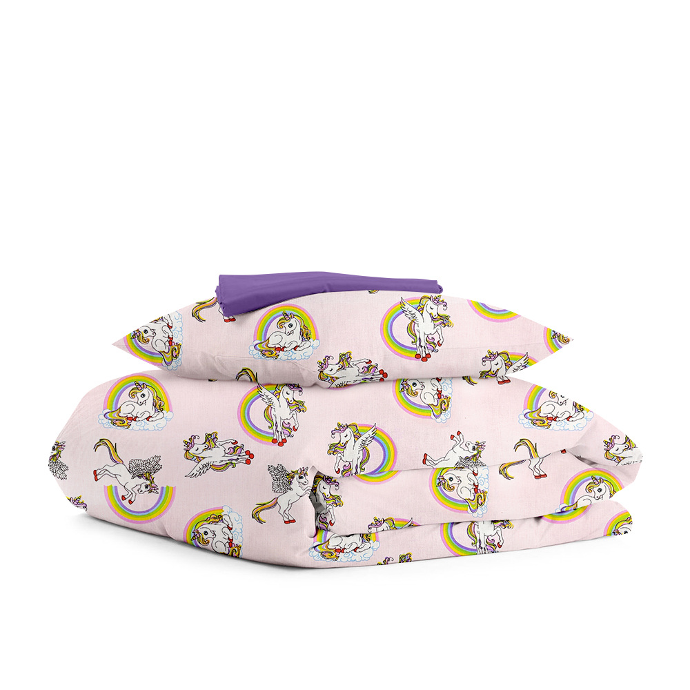Підліткова постіль з простирадлом на гумці Rainbow Unicorn CS2 COSAS рожевий 160х220 см