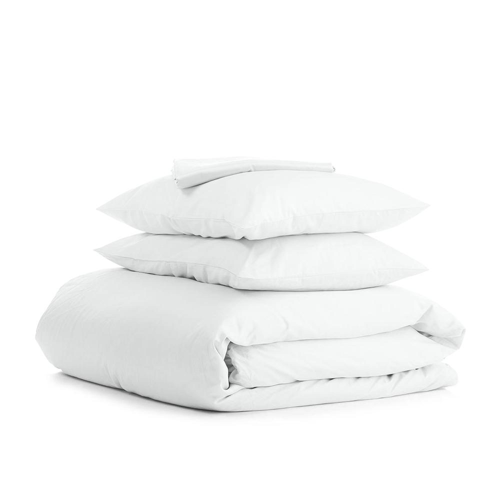 Комплект полуторної постільної білизни на резинці COSAS SNOW Ранфорс 160х220 см Білий