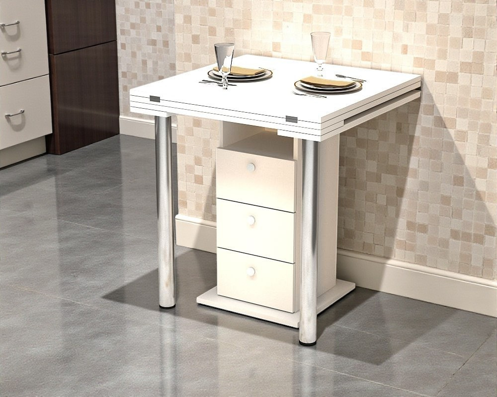 Стол-трансформер обеденный Tobi Sho "Кардамон" с ящиками для кухни, гостиной, студии, 1400х700х750 мм Белый