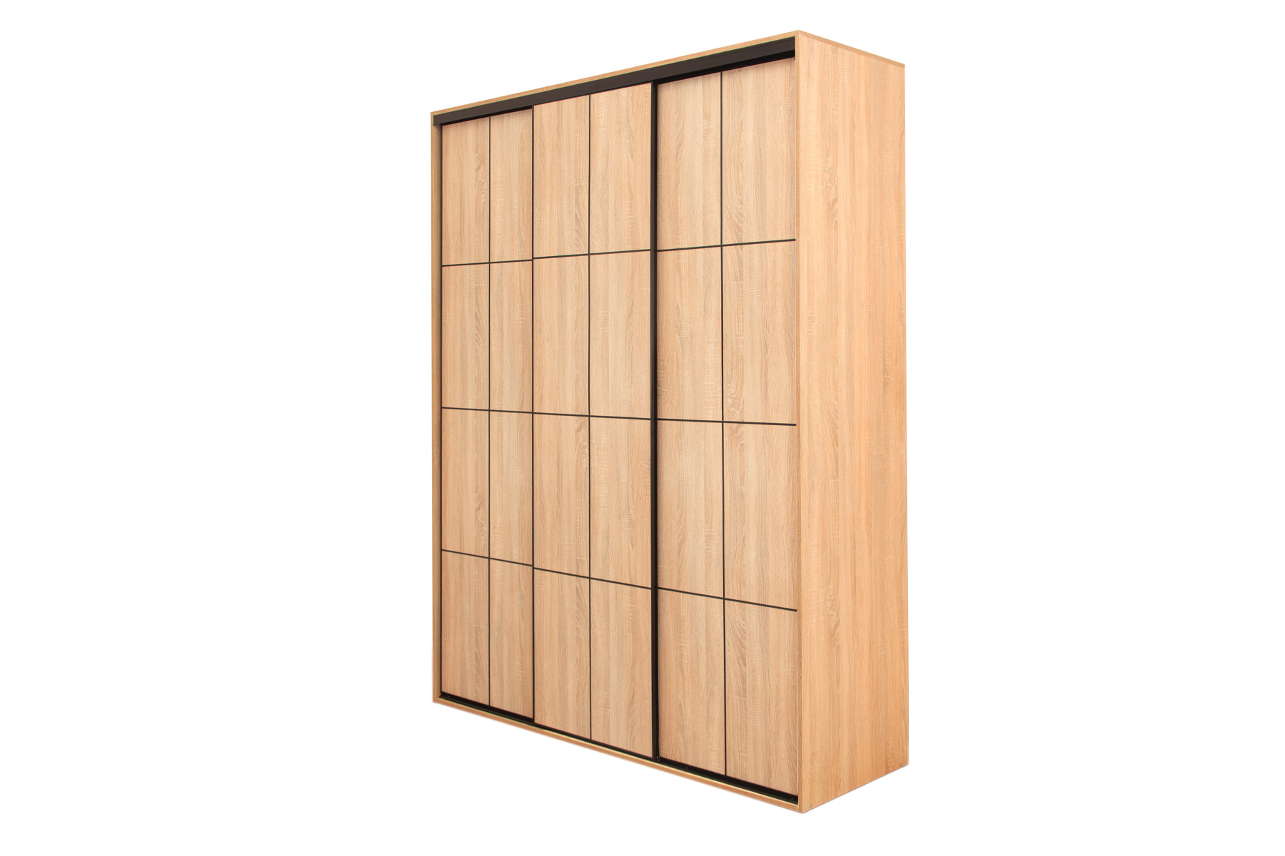 Тридверна шафа-купе без дзеркал створена для організованого та зручного зберігання речей у житловому просторі. Містке внутрішнє наповнення дозволяє раціонально розмістити одяг, взуття, аксесуари та сезонні речі, підтримуючи порядок і легкий доступ до всього необхідного. Завдяки чіткій геометрії та збалансованим пропорціям шафа виглядає лаконічно й легко вписується в інтер’єр спальні, гардеробної або коридору.