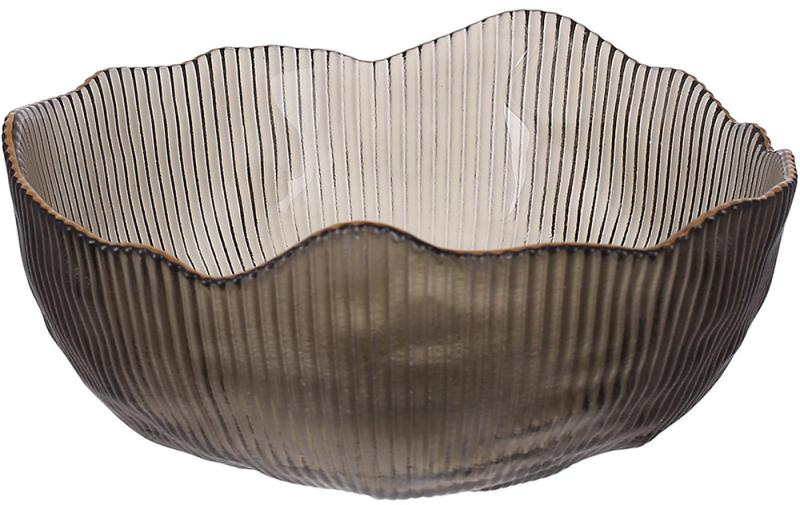 Скляна салатниця сірий-димчастий із тонкою золотою облямівкою.