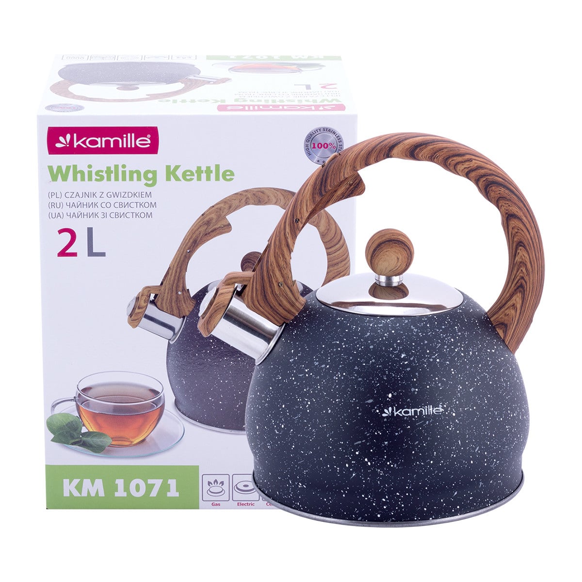 Чайник Black 2л з нержавіючої сталі зі свистком та нейлоновою ручкою для індукції та газу Kamille KL226371