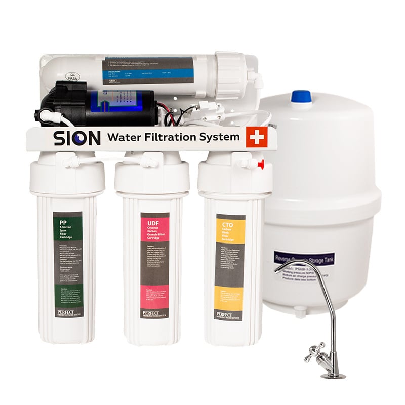 Фільтр зворотнього осмосу Sion 4-75 з помпою - це надійний спосіб забезпечити вашій родині безпечну, чисту воду в будь-який момент. Забудьте про забруднену воду та насолоджуйтеся свіжістю та смаком води завдяки цьому передовому фільтру зворотнього осмосу.