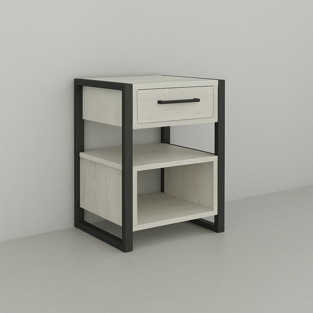 Тумба для прихожей Tobi Sho Степь ЛТ-8 в стиле Лофт с ящиком, 460х350х600 мм Дуб крафт белый