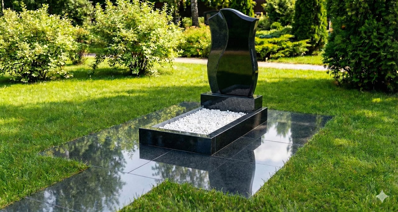 Фігурний пам'ятник для одного з чорного граніту. Розмір майданчика та пам'ятника можна поєднати з замовником