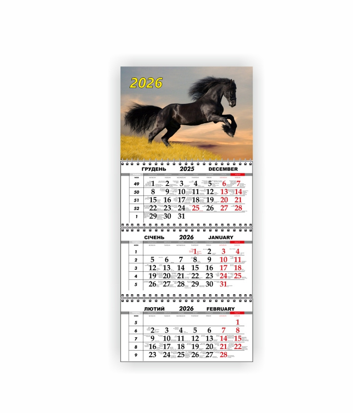 Квартальний настінний календар Vivay 2026 Рік коня 30x65 см Різнокольоровий (hub_7cb9xv)