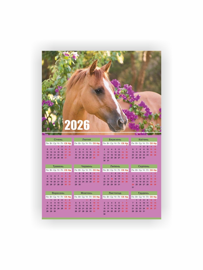 Календар-плакат Vivay 2026 Рік коня А3 Різнокольоровий (hub_0lmbch)